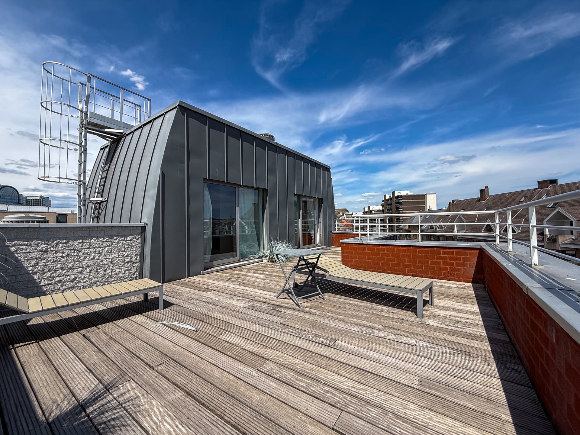 ETTERBEEK, à proximité des institutions, commerces et transports. Lumineux PENTHOUSE (3ch/2sdb) meublé de 135m² avec terrasse situé au 6ᵉ étage avec ascenseur. Il se compose d'un hall d'entrée, cuisine semi-ouverte équipée, spacieux séjour entouré de deux belles terrasses orientées EST et OUEST, 3 chambres (16-13-12 m²), salle de bains, 2 toilettes séparées, salle de douche, terrasse de 60m² orientée SUD-EST. Cave. Possibilité d'emplacement parking intérieur: +150€/mois. Provision de charges : 250€ par mois (communs). PEB: D. À découvrir chez L&P!